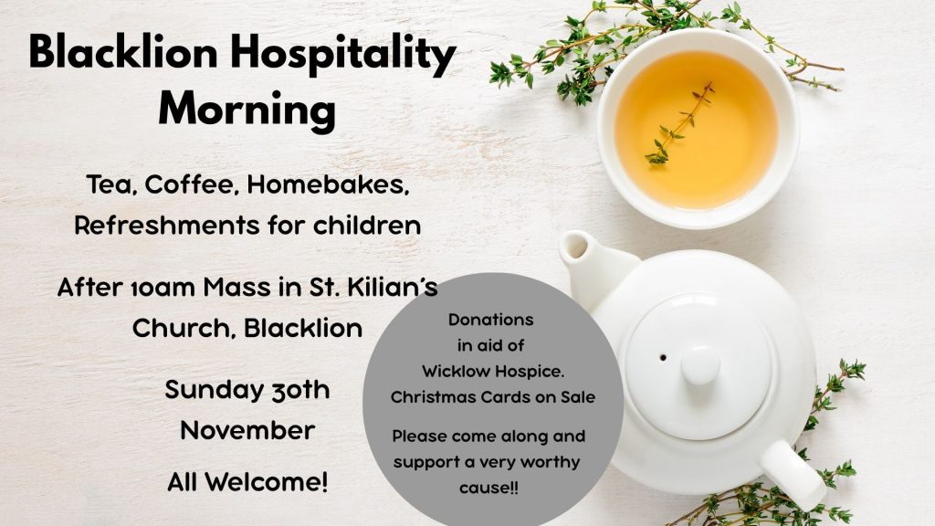 Don’t miss this chance to meet other parishioners and enjoy some delicious treats! On Sunday the 30th November, come join the congregation after 10am Mass in St. Kilian’s Church, Blacklion, Greystones.