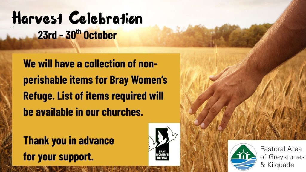 The collection of goods across the Pastoral Area will be for the Womens’ Refuge in Bray, and a list of supplies needed will be made available in each of the churches. A collection basket will be available for goods in each church in the Pastoral Area.