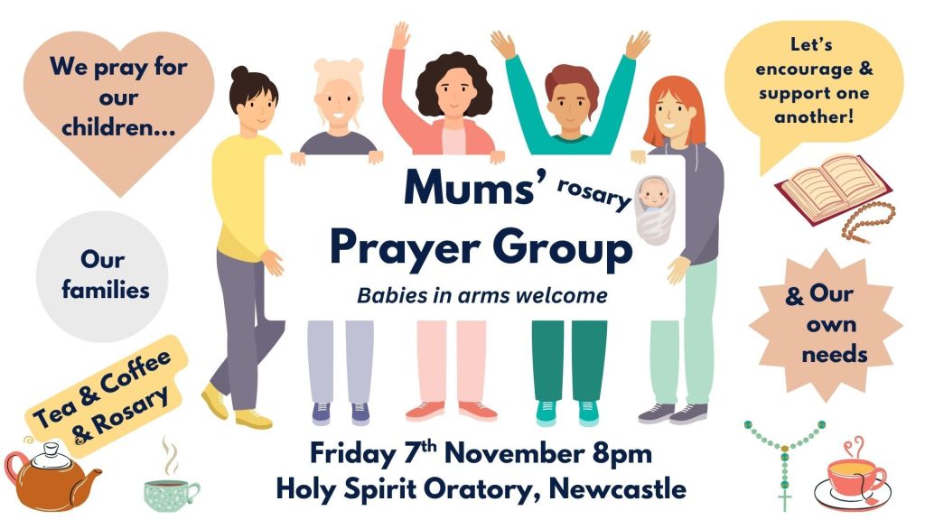You are invited to our Mum’s Prayer Group for Kilquade and Greystones on Friday the 7th November from 8pm – 9.30pm in the Holy Spirit Oratory, Newcastle.