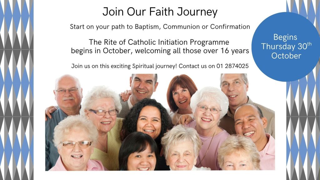 The next Rite of Christian Initiation of Adults (RCIA Programme) will begin on Thursday the 30th October.