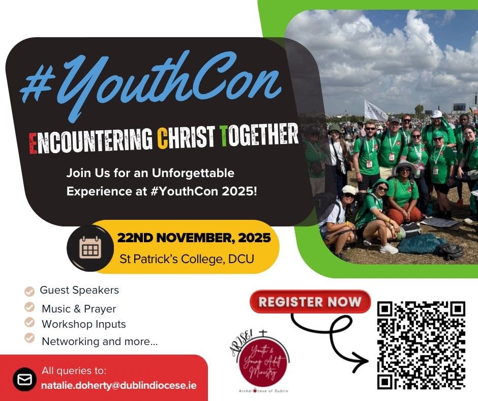 Registration is now open for the second intake of the Diocesan Certificate in Young Adult Ministry – #YML. Running over six Saturdays, the aim of this Diocesan Certificate is to build up the capacity of Youth Ministry and Youth Ministry Leadership throughout the Archdiocese of Dublin. It is a highly practical course where participants are given new experiences and key resources, including gaining vital skills to put into practice in their local context, while also being grounded in key church documents such as Christus Vivit. For more information and to send on any queries, please contact natalie.doherty@dublindiocese.ie. An information session will be announced for November. Registration is open and can be accessed here: https://forms.office.com/e/Et8sXCxNtC